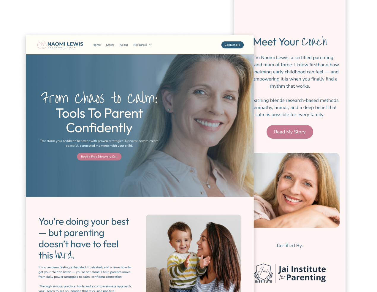 A grounded, conversion-focused brand and website concept that communicates calm authority for a parenting coach.